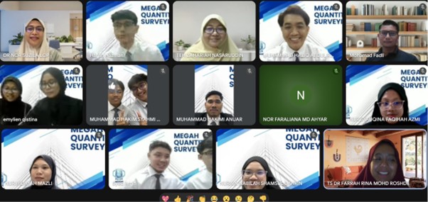Program ini melibatkan kolaborasi bersama Alumni UiTM seorang Pengurus Kontrak dari Industri Tempatan dalam Pengajaran Penyediaan Pengiraan Awalan Projek bagi perspektif Jurukur Bahan iaitu Sr Mohamad Fadli Badarudin (CQS). Program yang bermula pada jam 8 malam dan berakhir pada jam 10 malam secara di dalam talian ini dihadiri oleh 35 pelajar tahun akhir Diploma Ukur Bahan.