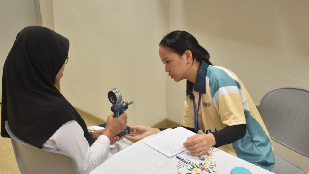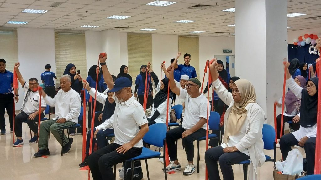 Dengan tema “Penuaan Aktif: Memperkasa Warga Emas Menangani Sarkopenia”, peserta diberi pendedahan holistik mengenai keadaan sarcopenia—kehilangan jisim otot dan penurunan fungsi fizikal akibat penuaan. Sesi merangkumi saringan kesihatan, penilaian risiko jatuh, ceramah kesedaran, serta pelaksanaan modul senaman berstruktur, meliputi senaman rintangan, aerobik, keseimbangan dan kelenturan yang dilaksanakan secara sistematik dan profesional.