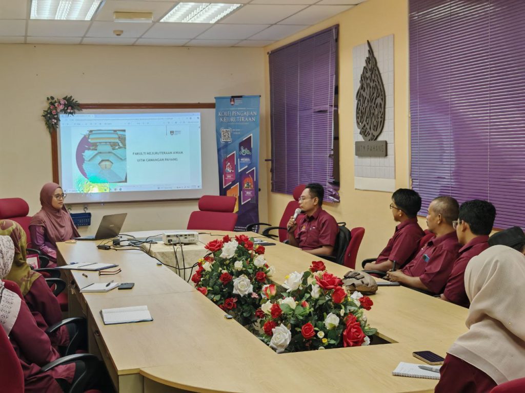 Jengka, 11 Jun 2025 – Fakulti Kejuruteraan Awam (FKA), Universiti Teknologi MARA (UiTM) Cawangan Pahang telah menerima kunjungan rasmi dari Kolej Vokasional Sultan Haji Ahmad Shah Al-Mustain Billah (KV SHAS), Kuala Lipis dalam usaha memperkukuh jaringan akademik dan makmal antara dua institusi pendidikan. Lawatan tersebut diketuai oleh Ts. Mohd Ariff Bin Mustaffa @ Azhar selaku Ketua Program Teknologi Pembinaan, dan disertai seramai 10 orang pensyarah KV SHAS termasuk Ketua Jabatan Teknologi Awam, En. Che Norazlin Bin Che Mat.
