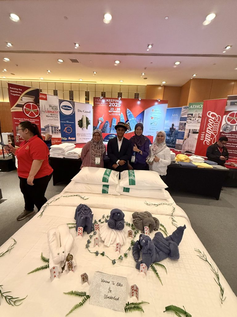 In the Towel Art category, Aniq Ihtisyam Bin Mohd Saupi impressed judges with his creative execution, competing against seasoned industry professionals. Meanwhile, the team HotCat Sparkle—comprising Puteri Syafieqah Binti Khairul Anhar Holder, Nur Alyaa Binti Yuselman, and Nurul Syaqila Binti Zamri—clinched second place in the Occasion Decoration category. Their presentation, themed “Serene Beauty of Malaysia”, earned them a medal and a cash prize of RM800.