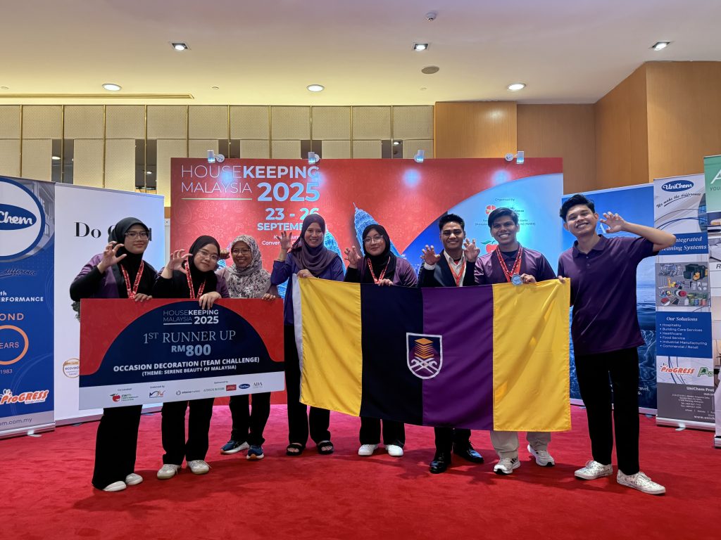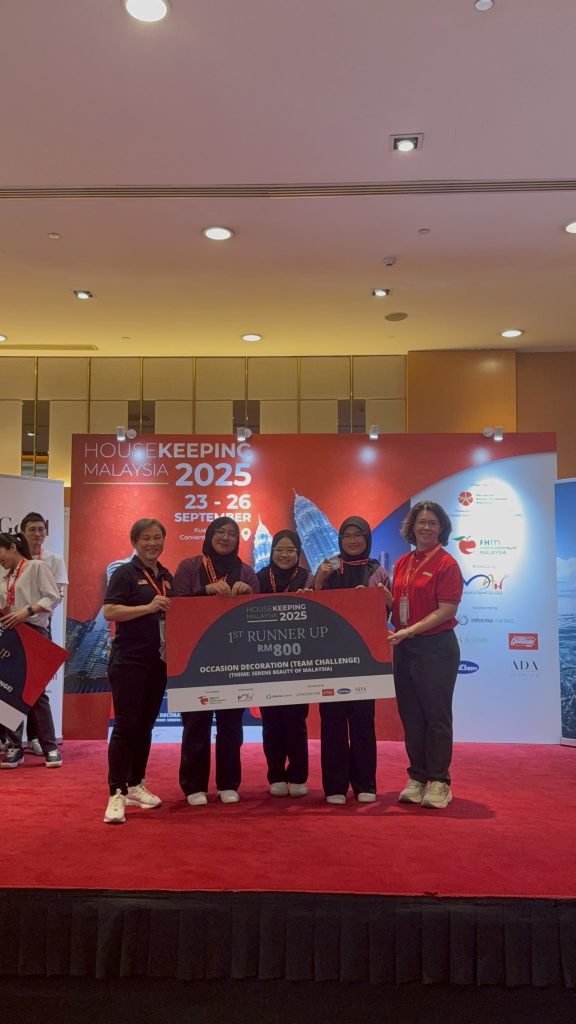 KUALA LUMPUR, 27 September 2025 – Students from the Faculty of Hotel and Tourism Management (FPHP), Universiti Teknologi MARA (UiTM) Selangor Branch, Puncak Alam Campus, delivered stellar performances at the Housekeeping Competition 2025, organized by the Malaysian Association of Housekeepers (MAHIR) in collaboration with Food and Hospitality Malaysia (FHM). The event, held from 23 to 26 September 2025 at the Kuala Lumpur Convention Centre, marked the second edition of the competition and attracted participants from higher education institutions and the hospitality industry nationwide.