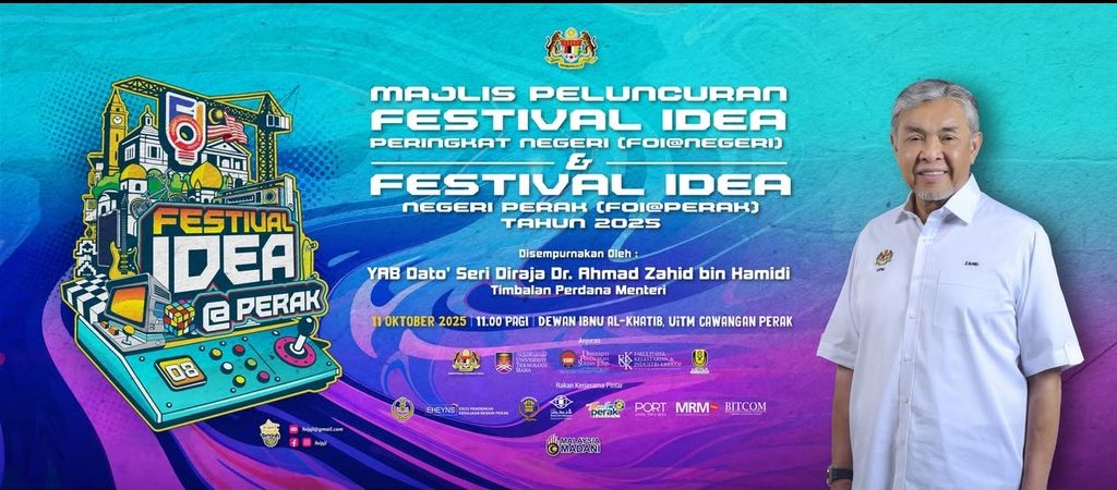 SERI ISKANDAR, 12 October 2025 — The Festival of Idea@Perak 2025 was officially launched by the Deputy Prime Minister, YAB Dato’ Seri Diraja Dr. Ahmad Zahid bin Hamidi, at Dewan Ibnu Al-Khatib, Universiti Teknologi MARA (UiTM) Perak Branch, Seri Iskandar Campus. Held from 11 to 12 October 2025, the festival was organised in collaboration with the Ministry of Higher Education (KPT) and brought together public and private higher education institutions across Perak in a dynamic showcase of creativity, innovation, and academic collaboration.