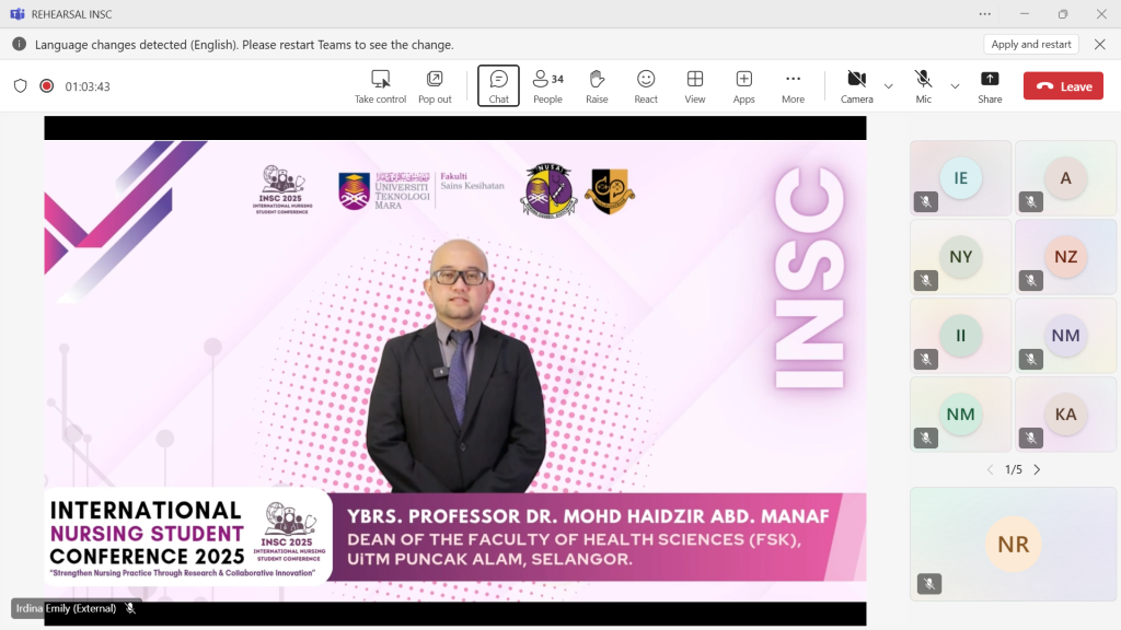 UiTM PUNCAK ALAM, 11 October 2025 – The International Nursing Student Conference (INSC) 2025, organized by the Nursing Students Association (NUSA), Faculty of Health Sciences, Universiti Teknologi MARA (UiTM) Puncak Alam, successfully convened nursing students, educators, and healthcare professionals from across the region in a fully virtual event held via Microsoft Teams. The conference was officially inaugurated by YBhg. Professor Dr. Mohd Haidzir Abd. Manaf, Dean of the Faculty of Health Sciences, UiTM.