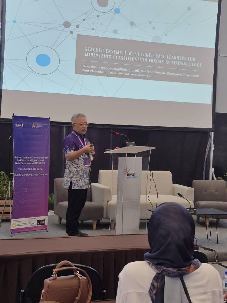 Persidangan berprestij ini berlangsung secara hibrid, iaitu bersemuka di BINUS@Bandung, Kampus Paskal dan secara atas talian melalui Google Meet serta Facebook Live. Dengan tema “From Insights to Impact: Leveraging AI and Data Science for Strategic Decisions”, AiDAS2025 menjadi platform penting untuk penyelidik, sarjana dan pengamal industri membincangkan peranan kecerdasan buatan (AI) dan sains data dalam memacu keputusan strategik di peringkat global.