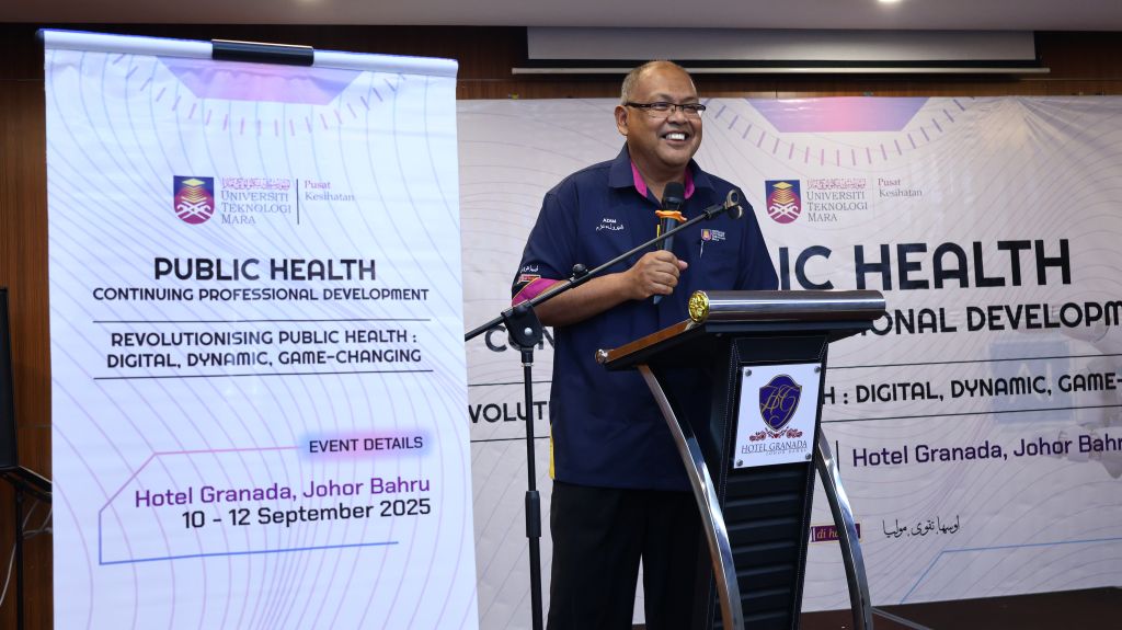 JOHOR BAHRU, September 2025 — Universiti Teknologi MARA (UiTM) telah berjaya menganjurkan program Public Health Continuing Professional Development (CPD) 2025 yang berlangsung dari 10 hingga 12 September 2025 bertempat di Hotel Granada, Johor Bahru. Program bertemakan “Revolutionising Public Health: Digital, Dynamic, Game-Changing” ini telah menghimpunkan pakar, pegawai dan petugas kesihatan dari seluruh negara dalam usaha memperkukuh kemahiran dan pengetahuan terkini dalam landskap kesihatan digital.